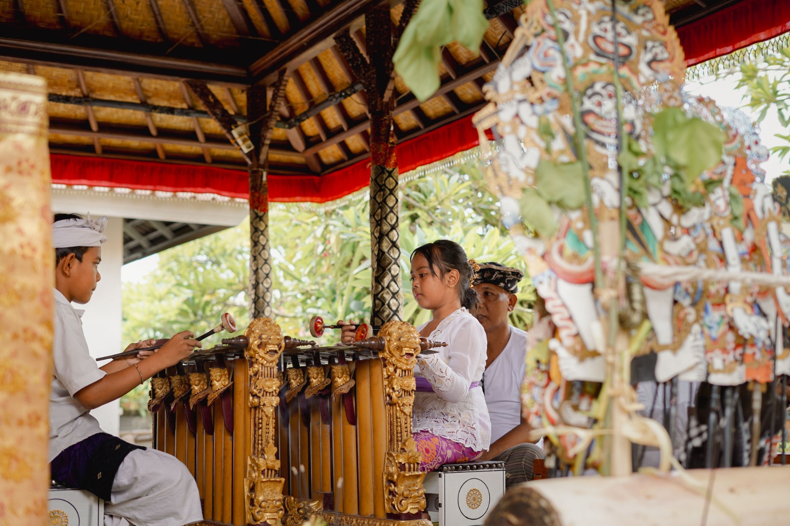 In addition to his puppet mastery, Gusdwi is an enthusiastic learner of other Balinese and Hindu cultural arts. He has immersed himself in the study of Balinese letter-writing, Gamelan and Rindik playing, and traditional Balinese dances, reflecting his broad interest and commitment to his cultural roots.